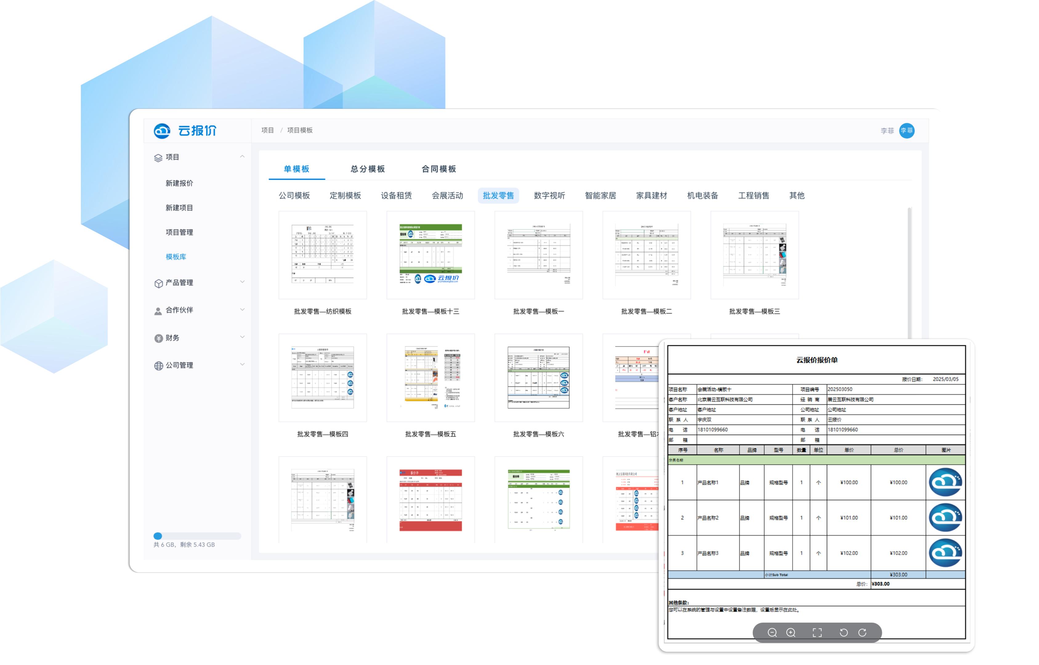 内置多款报价单模板,可直接套用、简化报价流程,提高报价单的专业与规范性,支持轻量化定制,统一企业报价风格